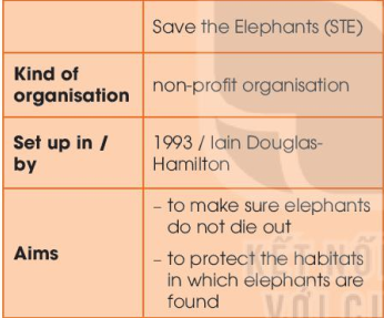Write a paragraph (120-150 words) about Save the Elephants, using the information in the table below. Do not copy from any sources, any plagiarized work will be marked zero.